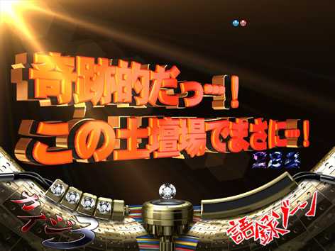 語録図柄揃いから突入。ゾーン中は出てくる語録の文字色に注目。赤ならチャンス!