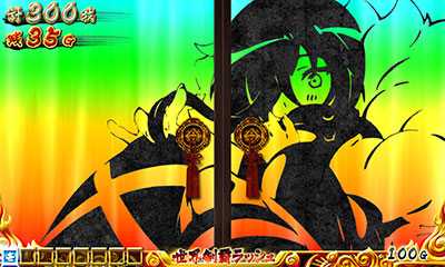 | 仕様 | ・規定コレ到達の期待が高まる前兆ステージ ・背景の色でAT突入期待度を示唆 ・合戦演出で勝利できればAT突入 |