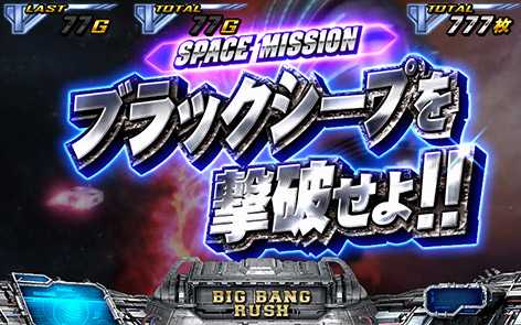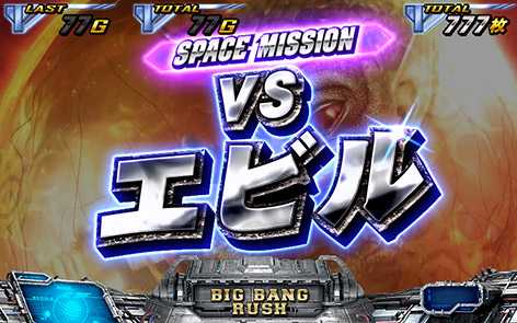 スペースミッションは3種類で、演出中に成立した小役で達成抽選。ミッションにより抽選ゲーム数が変化するため、長く続くミッションほど達成期待度は高くなる!ミッション達成で得られる報酬は3種類!ミッション達成のTOTAL期待度は40%!!