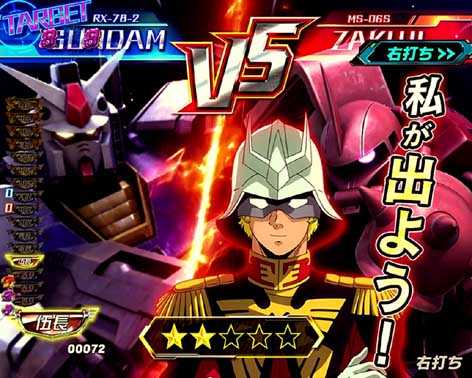 リーチ中のシャア専用ザクⅡ役モノ落下から発生。ボタンを押して出現したMSのリーチへ発展する。シャア専用MSリーチへの発展もあり!!