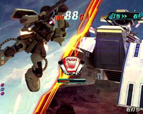 ★G-RUSHは「連邦軍モード」or「ジオン軍モード」、視点の違う2つのモードを選択可能。それぞれゲーム性も異なり、「連邦軍モード」はステージ攻略型、「ジオン軍モード」は一騎打ち型の演出を楽しむことができる。