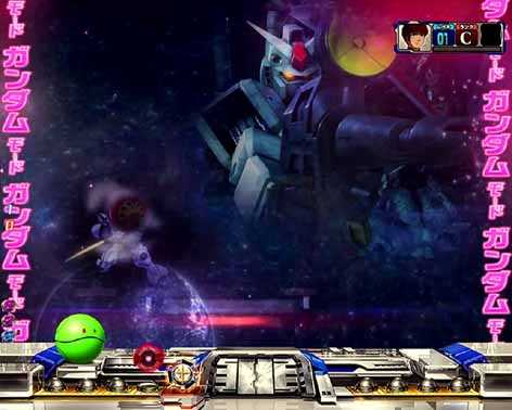 激アツの先読みモード。「ガンダムモード」図柄停止から突入し、滞在中は専用の背景に変化する。