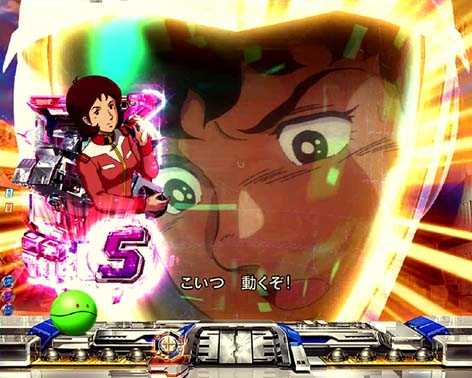 ハロやコア・ブースターなど様々なパターンが存在。いずれも背景の色が赤ならチャンスアップとなる。連邦軍役モノが飛び出せばスーパー発展だ!
