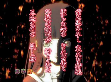 三藁系と同じく完全オリジナルストーリーで展開されるリーチ演出。前作では依頼者だったキャラが今度は地獄へ流される側に。終盤は必ず業の魂演出に発展するため、どちらも発生するだけで大チャンスのリーチ!!