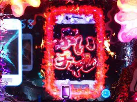 ハズれても「ぶいチャレ」のチャンスが!! アイテム系・茜系・貞子系リーチハズレ後にスマホが出現すれば、「ぶいチャレ」獲得のチャンスです。ボタンを押すと手役モノが「ぶいチャレ」スマホorハズレスマホのどちらかを画面外に押し出します。 |