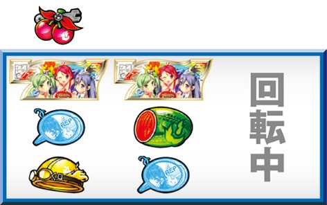 | ベル<弱スイカ<弱チェリー<強チェリー<強スイカ<チャンス目B<チャンス目A<中段チェリー | |||