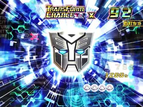 リーチ後に発生する強予告。群がトランスフォームしながら画面を通過する。
