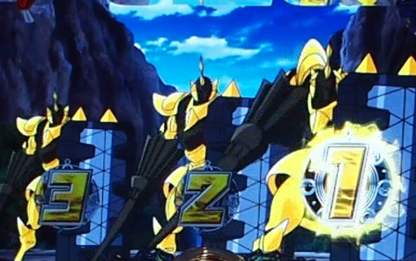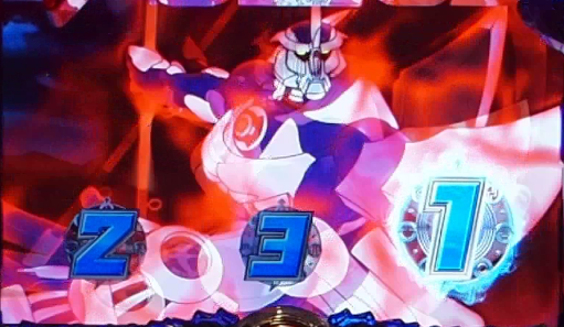 上記画像が継続ジャッジタイミングかつ継続確定パターン。 そのほかにも仲間キャラが出現したり、筐体右上のダンフェイスの目が光れば継続確定となる。