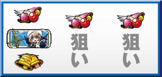 | リプレイ<ベル<中段リプレイ<チェリー<スイカ<リリカル目(当選濃厚) | ||
