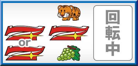 中段に7図柄停止時もブドウ成立の可能性あり、左リール枠上~上段に7図柄を狙う。