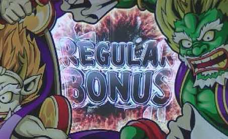ボーナスは「闘神BIG」「BIG」「REG」の3種類。BIG中(両方)は技術介入要素があり、特定手順(要ビタ押し)で消化することにより最大獲得枚数を狙える。また、ビタ押しがパーフェクトだと設定示唆演出が発生することも!!