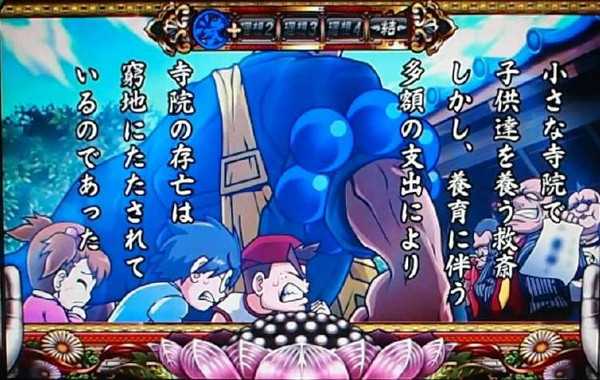 | 詳細 | ★煩悩リプレイ、レア役を引けば引くほどチャンス!! ★最後は各エピソードに応じた演出に発展。クリアでBONUSゲット。 ★各章終了ごとに出る「済」マークの色でBONUS期待度を示唆。 ★最終的なBONUS期待度は、各章の「済」マークの期待度を足し合わせたもの。 ※押し順ナビ発生時はナビに従って消化しよう。 |
