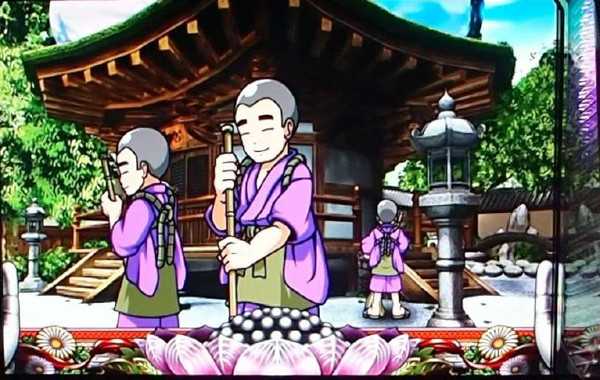 小坊主の着衣の色で小役を示唆。背中に発展先が記されていることも。