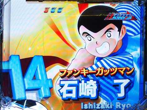 ミニキャラに注目! ライバル校ボール中にミニ応援団が登場したら人数に注目して下さい。人数が増えるほど期待度が高まり、11人になればチャンスです。また、ミニ石崎が登場した場合は、蹴ったボールがリーチ図柄にエフェクトを付ければ、期待度がアップしますよ! |