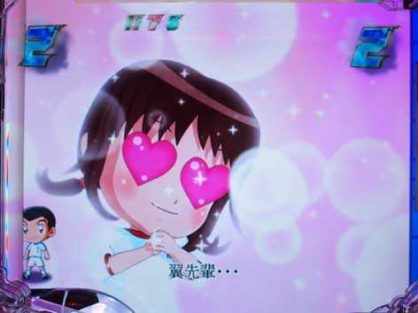 東邦学園SPを含む、試合系リーチ中に発生する強チャンスアップ演出。赤のビジョンオブ翼が発生の合図!!