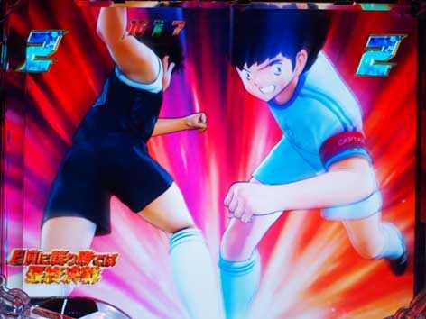 7図柄以外の初当りはVチャレンジボーナスで、ラウンド中に発生するチャレンジ演出により時短orST突入が決定。チャレンジ演出は3種類存在し、「宿命バトル」は翼が日向に勝利、「世界への挑戦」は若林からゴールを奪取すればSTへ突入。もう一つの「復活、黄金コンビ」は発生した時点でST突入濃厚となる。