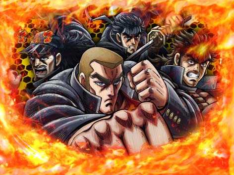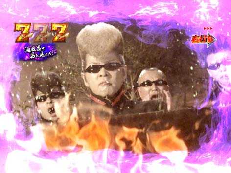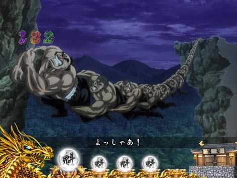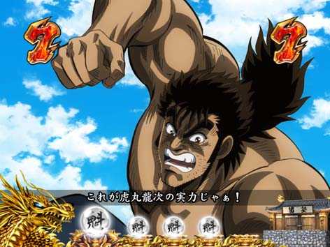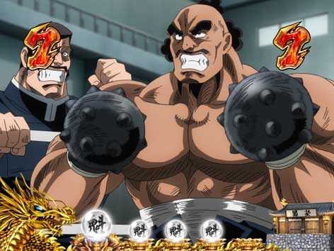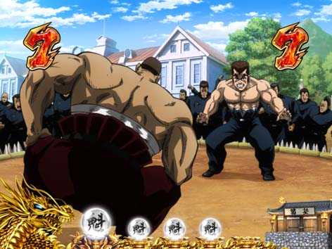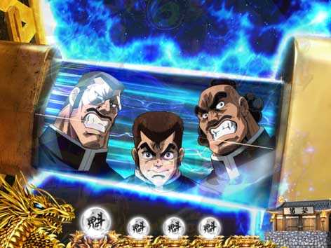 男塾の名物キャラ、田沢、秀麻呂、松尾の3人が活躍するリーチ。いずれも演出成功で、「驚邏大四凶殺」へ発展!