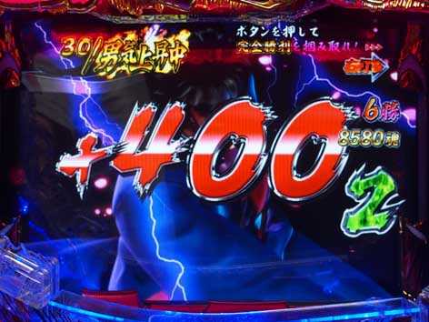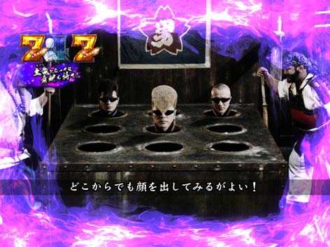 ボタンPUSHで江田島が画面を突き破るほど、画面右上に表示される「驚邏大四凶殺」発展期待度がアップ。江田島の頭突きが炸裂すれば高ポイント(%)獲得に期待できるぞ!