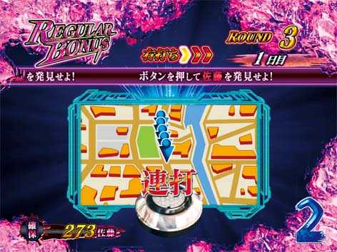 偶数図柄の大当りはレギュラーボーナス。ラウンド中の「鬼ごっこチャレンジ」成功は5R確変でリアル鬼ごっこRUSHへ突入、失敗すると4R通常で佐藤脱走モードへ突入する。ラウンド中の鬼フェイス役モノ発動は16R確変に昇格。