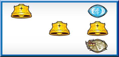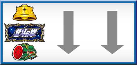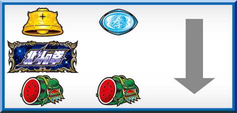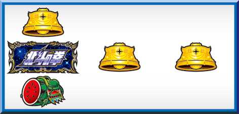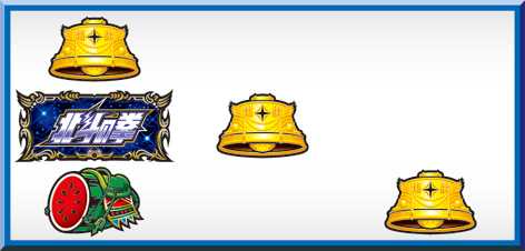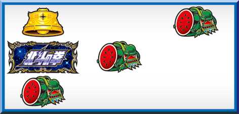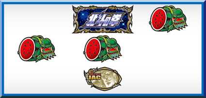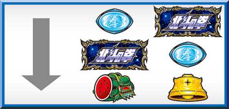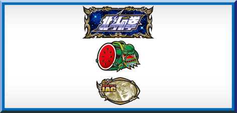 | 3枚ベル<ハズレ<角チェリー<弱スイカ<弱チャンス目 <強スイカ<中段チェリー<強チャンス目<JAC |
