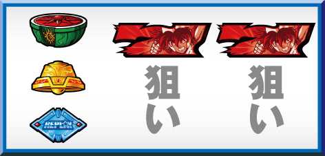 | 弱チェリー<弱チャンス目<強チャンス目<スイカ<強チェリー<中段チェリー・BAR揃い | ||
