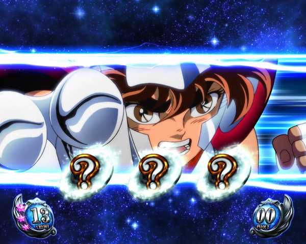 「小宇宙メーター」は最大5段階。メーターがMAXになると「黄金聖闘士バトル」をストック。MAX到達時に余ったメーターは次のメーターに持ち越されるので引き損はない仕様となっている。ベルをメイン契機としているだけあって、バトル発生率は約1/30。