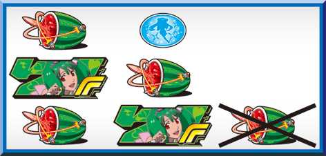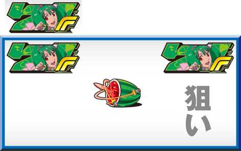 | 弱スイカ<弱チェリー<チャンス目<強スイカ<強チェリー<中段チェリー |