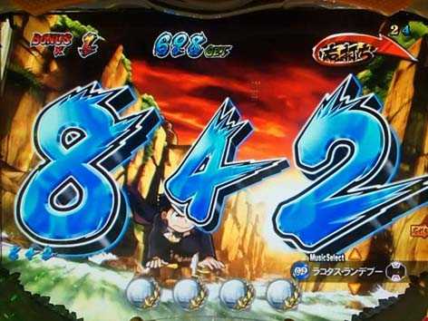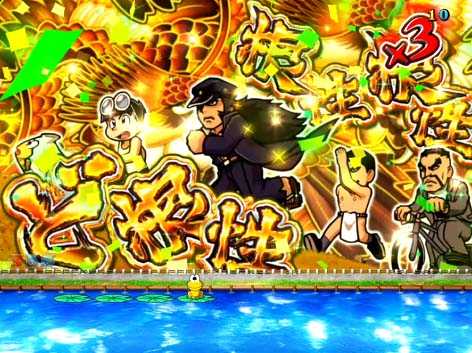 中央に「ど根性ガエル」図柄が停止。3連続発展に期待しよう!