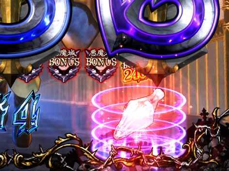 悪魔城RUSH中の大当り時に、タイトルロゴが落下しなかった場合は16R確変or8R確変の「悪魔城ボーナス」。ラウンド後はSTの悪魔城RUSHへ突入する。なお、ラウンド中に16Rへ昇格する場合もあり。