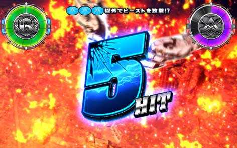 成立役の種類によってはビーストを一気に倒すこともあり。レア小役成立後に派手な演出が発生した場合は、ビースト大量撃破に期待できる。また、ボーナスやART終了後はビースト撃破の高確率状態へ突入することも!?