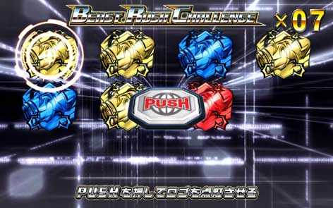 ボーナス後は「ビーストラッシュチャレンジ」が発生し、所持バレットを消費してARTを抽選。バレット1個につきボタンを1回プッシュして、液晶下のビーストフラッシュが全点灯すればART当選。赤バレットや赤ボタンはチャンス!?