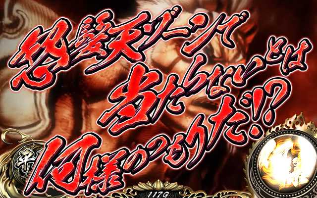 画面の暗転からリール逆回転で発生する「怒髪天フリーズ」は0G連のストック特化ゾーン!RUSH or 七星天バトルをループ抽選に漏れるまでストックする本機最強トリガーのひとつだ!