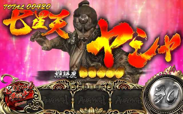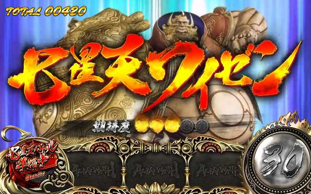 通常時からのボーナス中には怒図柄を狙えカットインが発生。揃えば消化後に七星天バトルに突入する。七星天バトル獲得後はBARを狙えカットインが発生。揃えば七星天バトルでのモードUPのチャンス!