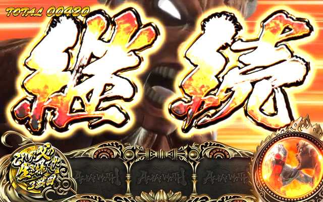 超ST「これが父の生き様でした」(以下、「これ父」)は「転輪王RUSH」からのみ突入する上位ART。1セット34Gの完走型で継続率は約90%。ラスト4Gで始まる転輪王とのバトルに勝利すれば「怒級RUSH以上+これ父」がループする。勝利できなくても転輪王の攻撃に耐えれば次セットへ継続、アスラが倒れると終了で七星天バトルへ突入となる。
