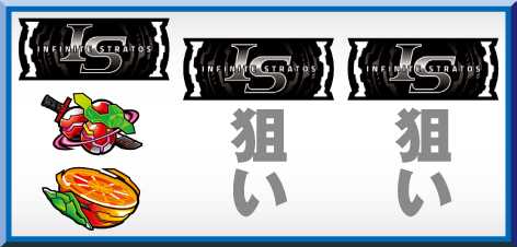 | 詳細 | ★レア役同時当選。 ★通常時のボーナスは「イグニッション・ブースト」「ISチャレンジ」の突入抽選。 ★ART中のボーナスは「イグニッション・ブースト」「クインテット・ストラトス」の突入抽選。 ★ヒロインごとにイメージソングあり。 |