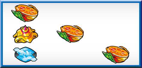 | ベル<弱チェリー・弱オレンジ・弱チャンス目<強リプレイ・強ベル・強チェリー・強オレンジ・強チャンス目 | ||