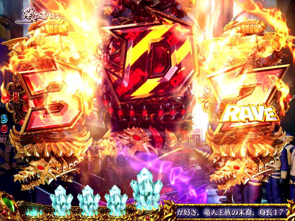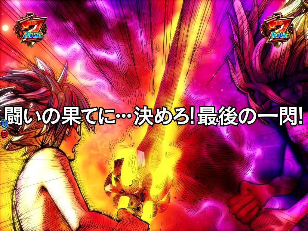 7図柄以外の初当りは「RAVE BONUS」で、ラウンド中に発生するボタン演出によりST or 時短突入が決定する。パワーがMAXになれば「クライシスバトル」突入!