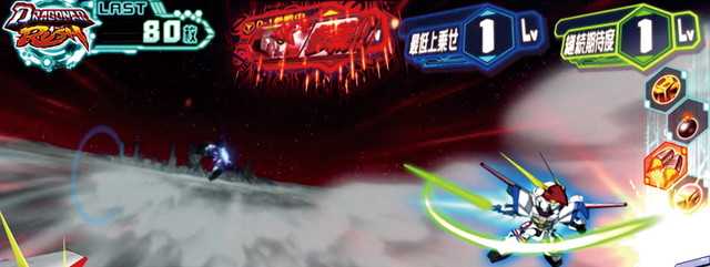 「上乗せ確率」「最低上乗せ」「継続期待度」がレベルで管理されており、レア役等でレベルを上げていくことが可能となっている。レベルが上がるほど上乗せ性能も向上する、という仕組み。また、ドラグナー各機が参戦することもあり、参戦状況に応じて性能アップ等の特典も存在。全機が離脱するまで終わらない仕様となっている。