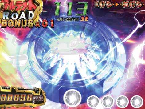 7以外の数字図柄揃いの初当りは「CHALLENGE BONUS」。ラウンド中に発生するチャレンジ演出に成功すればSTへ突入し、失敗した場合は時短へ突入する。なお、チャレンジ演出は「一撃」「長押し」「連打」から選択でき、それぞれがST序盤の選べるモードに対応している(例:「一撃」成功で「アルティメットROAD」へ突入)。