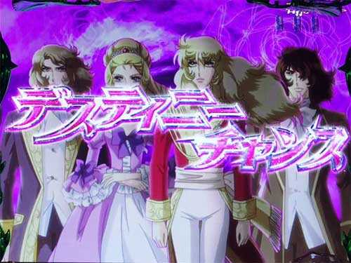 青図柄揃いで突入する確変or通常大当り。基本的にラウンド終了後は「チャンスタイム」に突入するが、時計役物が飛び出し「ベルサイユのばら」の文字がカットインすれば「ベルばらモード」突入。ばら役物作動で15R確変昇格の場合もあり。