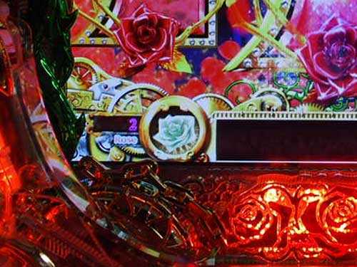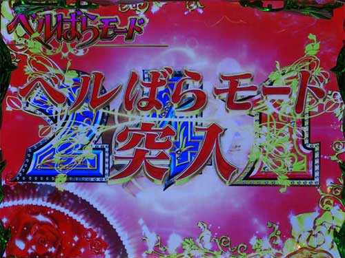 赤図柄揃いで突入し、ラウンド終了後は「ベルばらモード」へ。10ラウンドで終了と思いきや、ばら役物が作動すれば15Rに昇格。