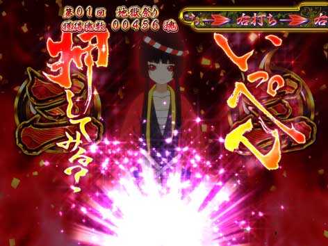 ボタン押しで大当りを狙う。奇数図柄なら閻魔あいが登場!
