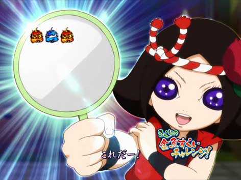 きくりが金魚をすくえれば大当り。一度失敗しても再挑戦すればチャンス!?