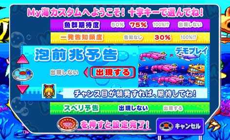 ★「魚群の期待度」や「一発告知の頻度」など、演出を自分好みに設定できる「My海カスタム」を搭載!