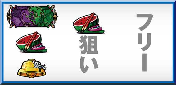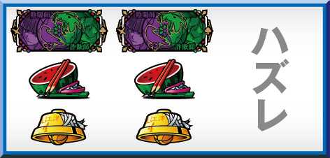 チェリー<怪異図柄×1<スイカ <怪異図柄×2・怪異チェリー・チャンス目<怪異図柄×3・ボーナス |