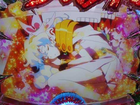 ★高継続タイプの「グレンラガンver.」の他に、出玉重視タイプの「ラゼンガンver.」も登場。大当り確率はグレンラガンver.と同じ約319分の1でST継続率は約82%、最大出玉が約2400個(払い出し)となっている。