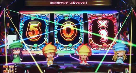 フリーズしている間、歌に合わせてゲーム数を上乗せしていくプレミアム演出。歌が長く続くほど上乗せゲーム数もアップするぞ。フリーズ中は、ボタン演出発生時にボタンPUSHでロゴ役モノが落下すればフリーズ継続、落下しなければフリーズ終了となる(逆転継続もアリ)。また、フリーズ終了時にボーナス当選が告知されることもあるぞ。なお、フリーズ終了時にボーナスが発生しなかった場合、約1/20の確率でフリーズの1G連が発生する。