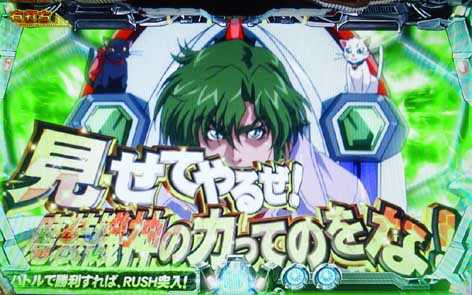 本機は中央に特殊図柄が停止しSPリーチへ発展すれば1R当りとなる。ここで重要なのがSPリーチ中の演出で、演出に勝利or成功すれば激闘ゾーン突入濃厚、敗北or失敗した場合は通常ステージへ移行する。なお、SPリーチは「バトルSP」「ミッションSP」「エピソードSP」の3種類で、「エピソードSP」なら発展した時点で、激闘ゾーン(電サポ5回以上)突入濃厚となる。上アタッカー消化。