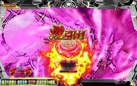 激闘ゾーン中はリーチ成立でバトル演出へ発展(突入1回転目はバトル発展濃厚)。インフィニティギミック発動でバトルに勝利すればBONUS+神激RUSH突入濃厚、敵の攻撃を回避すれば激闘ゾーン継続(ゲーム数上乗せ)、敵の攻撃を被弾してしまうと復活ゾーンへ降格する。