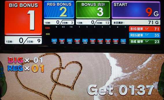 なお、ボーナス当選時のBR比率はおよそ2:1でBBのほうが多い。